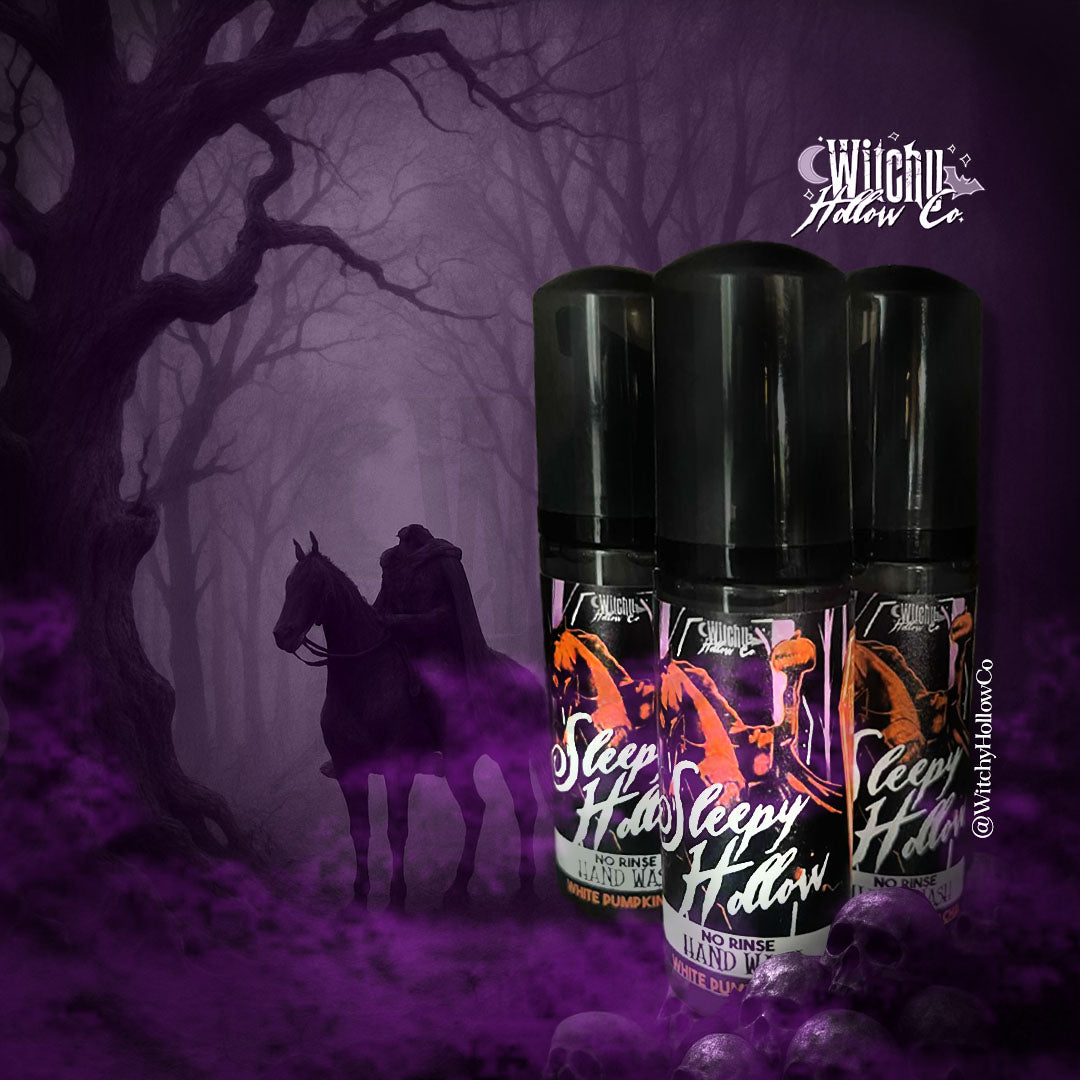 Scent: White Pumpkin Chai - Fast, fierce, and chilling — this rinse-free hand wash cuts through with the warm sting of chai spice and creamy pumpkin. The scent lingers long after, a ghostly reminder of the Horseman’s pursuit through the Hollow.
