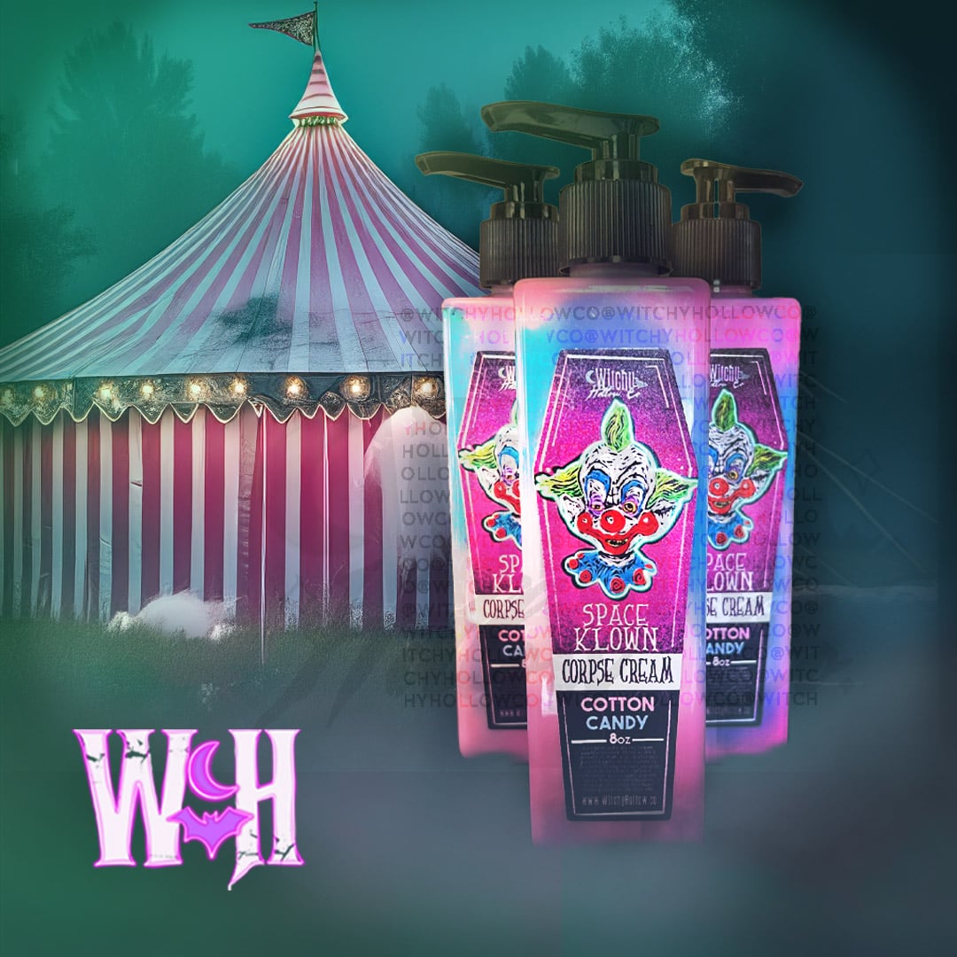 Scent: Cotton Candy Hydrate your skin with a sweet swirl of spun sugar. Our Killer Klown Cotton Candy Corpse Cream leaves skin soft, sweet, and circus-ready — no balloon tricks required.